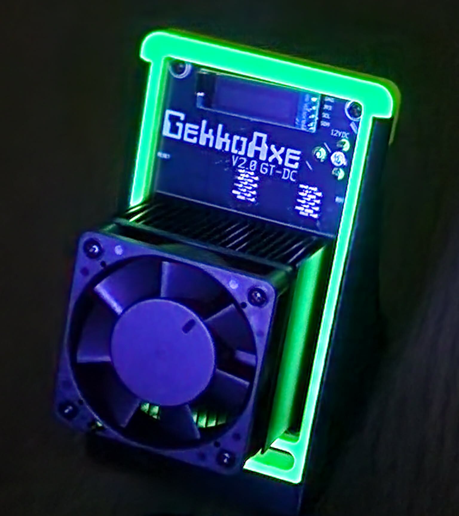 OLED status display that shows live stats like hashrate and temps